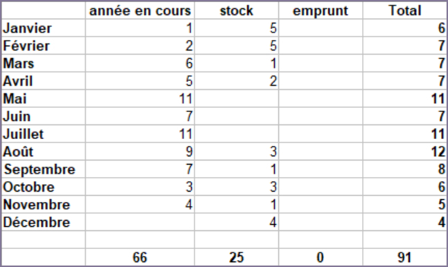 Parmi les critiques de romans, 66 sont consacrées à des acquisitions faites cette année et j’ai pioché 25 livres dans mon stock.